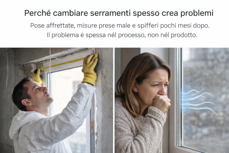 La maggior parte dei problemi con finestre, zanzariere e oscuranti non nasce dal prodotto, ma dal processo sbagliato: preventivi frettolosi, analisi superficiali e pose eseguite in velocità.